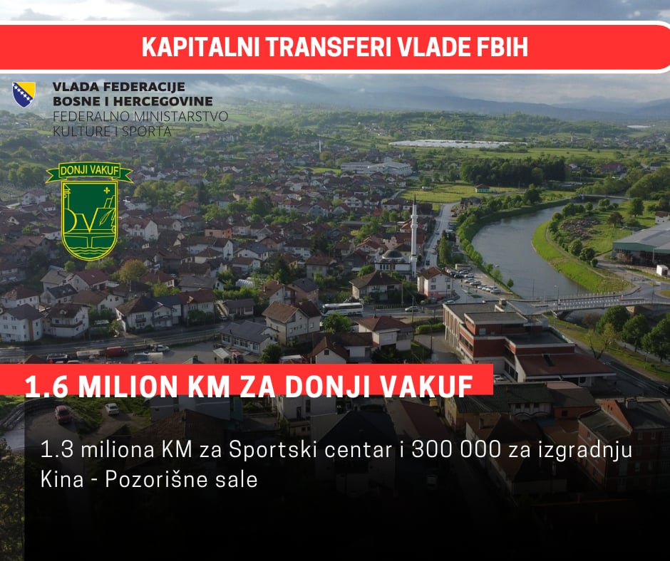 OpÄina Donji Vakuf ostvarila je znaÄajnu finansijsku podrÅ”ku s Federalnog nivoa. Vlada Federacije Bosne i Hercegovine Äe u ukupnom iznosu od 1.600.000 KM, podržati realizaciju dva kapitalna projekta u u naÅ”oj opÄini: