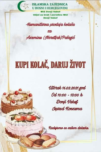 Medžlis IZ Donji Vakuf, Odjel za brak i porodicu najavljuju realizaciju humanitarne akcije. U