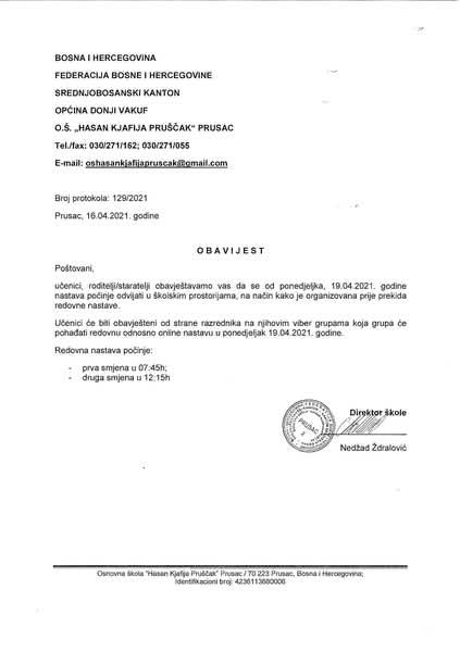 Iz Treće OŠ Oborci uputili su obavjest, kojim se obavještavaju učenici i nastavno osoblje škole,
