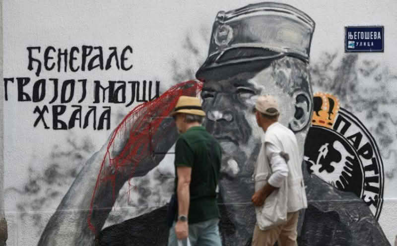 Mural sa likom osuđenog ratnog zločinca Ratka Mladića osvanuo je jučer na uglu ulice Alekse