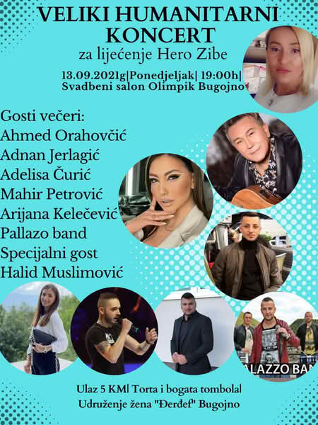 Humanitarni koncert za članicu Udruženja žena Đerđef Bugojno, Zibu Hero koja mora na pretrage u