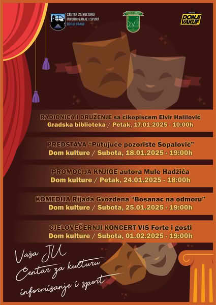 JU Centar za kulturu, informisanje i sport Donji Vakuf, hladne januarske dane, nizom kulturnih sadržaja