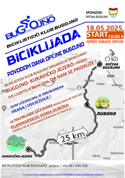 BICIKLIJADA POVODOM DANA OPĆINE BUGOJNO18.05.2025.god / NEDJELJASTART: 10:00 ISPRED ZGRADE OPĆINE( doći ranije zbog prijave