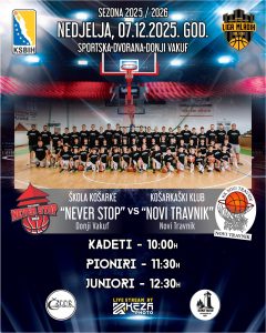 Omladinski pogon ŠK “Never Stop” u nedjelju, 07. decembra igra utakmice Lige mladih SBK. U