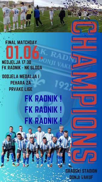 U 17:30 seniori FK Radnika igraju utakmicu protiv NK Sloge iz Gornjeg Vakufa, što je posljednja utakmica za ovu sezonu.