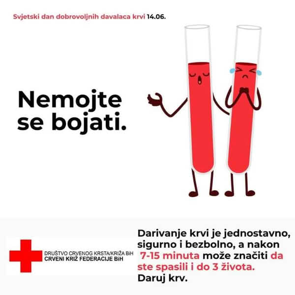 “Svim dobrovoljnim davaocima krvi čestitamo njihov dan, te koristimo priliku da im se neizmjerno zahvalimo na nesebičnim pružanju pomoći onima kojima je to potrebno, veliko hvala našim herojima, darivaocima koji su svojim činom spasili veliki broj života darujući dio sebe”,saopćili su iz Crvenog križa Donji Vakuf.