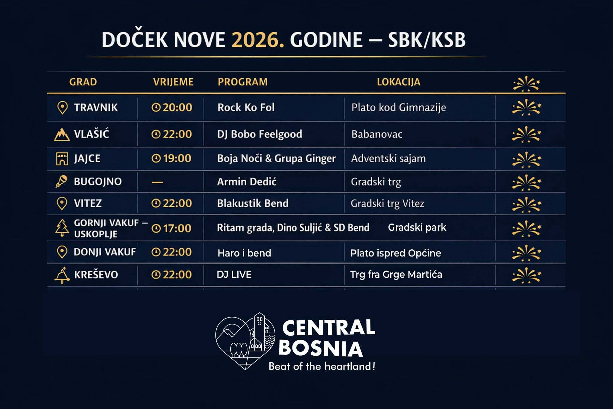 Pored Donjeg Vakufa, ostali gradovi i općine Srednjobosanskog kantona pripremili su raznovrstan muzički program za doček Nove 2026. godine.