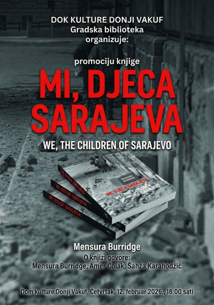 Promocija knjige “Mi, djeca Sarajeva” autorice Mensure Burrigde održat će se u četvrtak, 12. februara od 18 sati u Domu kulture Donji Vakuf.