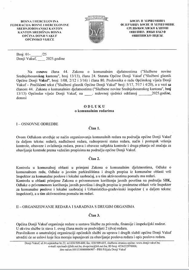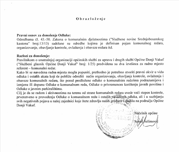 Jedna od 37. tačaka Dnevnog reda jučerašnje V redovne sjednice Općinskog vijeća Donji Vakuf, koja je jednoglasno usvojena je Odluka o komunalnim redarima.