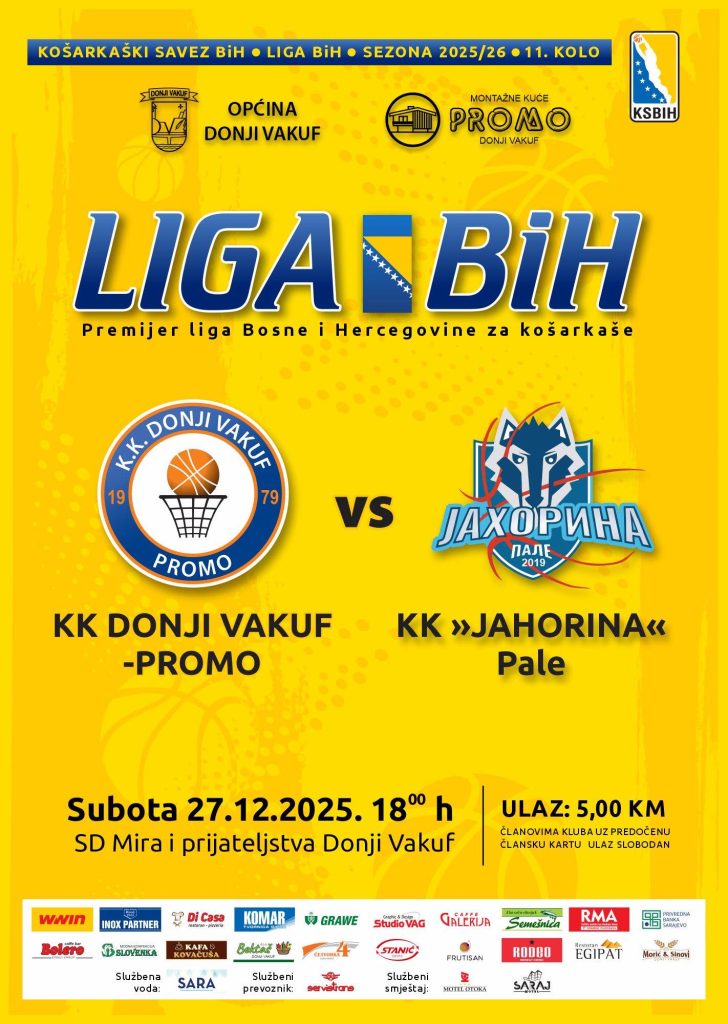 Utakmica se odigrava u subotu, 27. 12. 2025. godine od 18.00 sati u Sportskoj dvorani Donji Vakuf.