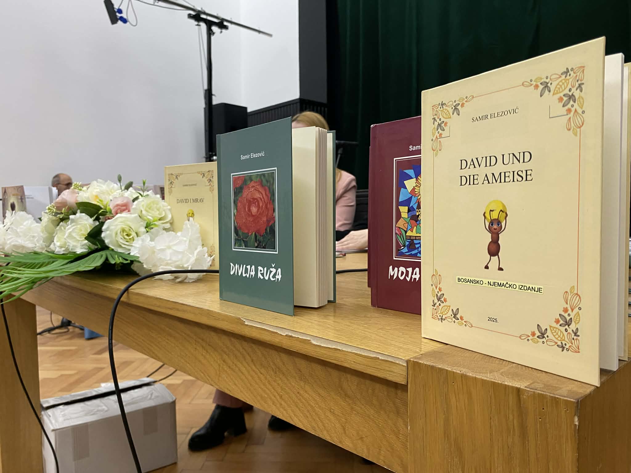 Na književnoj večeri predstavljena su dva naslova: „Rasuta sjećanja“ autorice Amele Đuliman i „David i mrav“ autora prof. Samira Elezovića. Oba djela imaju svoju posebnu poruku, a autori su na poseban način, kroz večerašnju promociju, prisutnima približili priče koje potiču na razmišljanje i otkrivaju posebnu emociju.