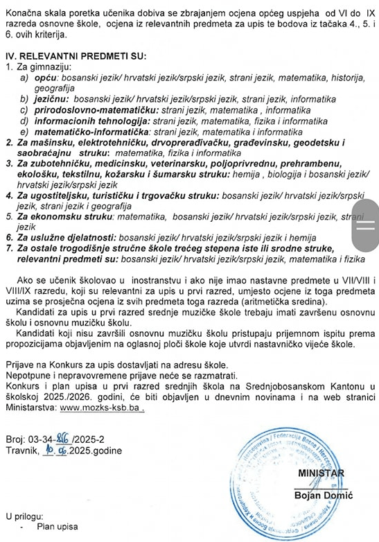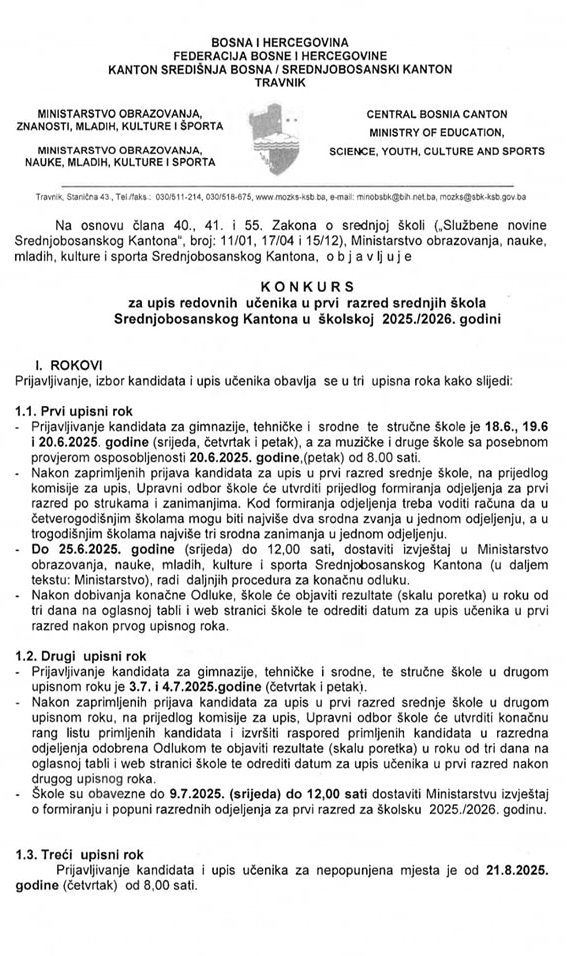 Na zvaničnoj stranici, Mješovite srednje škole – Donji Vakuf, objavljen je “Konkurs za upis redovnih učenika u prve razrede.” Ove godine, učenici imaju priliku upisa u: Opća gimnazija – u trajanju od 4 godine; Jezička gimnazija – u trajanju od 4 godine; Mašinski tehničar i konstruktor na računaru – u trajanju od 4 godine; Elektrotehničar informacijskih tehnologija – u trajanju od 4 godine. Također, učenicima je omogućen upis pohađanja srednje škole od 3 godine u sljedećim smjerovima: Vozač motornih vozila; Operater na CNC mašinama; Zavarivač; Automehaničar; Kuhar; Konobar. Kako navode iz MSŠ Donji Vakuf, svi ste dobro došli!