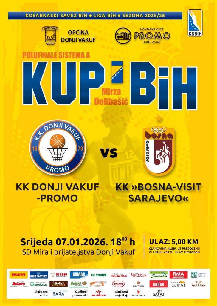 U okviru Kupa Mirza Delibašić, u Sportskoj dvorani u Donjem Vakufu , snage će odmjeriti KK Donji Vakuf – Promo i trofejni KK Bosna – Visit Sarajevo.