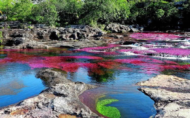 Od kraja jula do novembra, Kanjo Kristales u Kolumbiji je najšarenija rijeka na svijetu. Kratki period između kišne i sušne sezone dovodi do eksplozije crvenih cvjetnih biljaka koje naseljavaju vode rijeke.