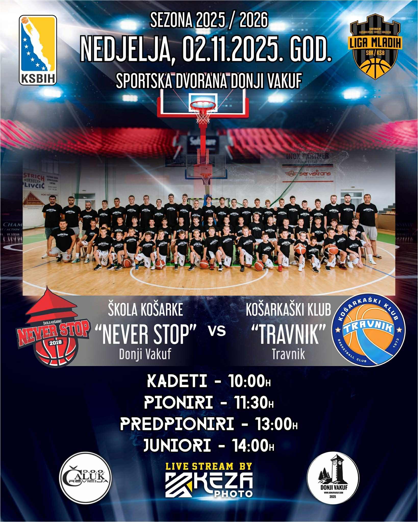 - Škola košarke “Never Stop”, ugostit će ekipu iz Košarkaškog kluba “Travnik” iz Travnika, već sutra, nedjelja, 2.novembra, s početkom od: kadeti (10.00 sati), pioniri (11.30 sati), predpioniri (13.00 sati), juniori (14.00 sati).