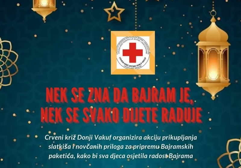 Crveni križ općine Donji Vakuf pokreće akciju prikupljanja slatkiša i novčanih sredstava za pripremu bajramskih paketića.
