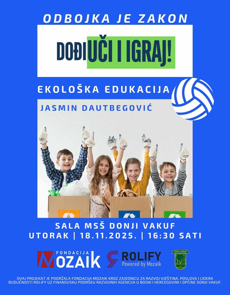 U utorak, 18. novembra od 16.30 minuta u Fuskulturnoj sali Mješovite srednje škole Donji Vakuf održat će predavanje Ekološka edukacija a predavač je  Jasmin Dautbegović.