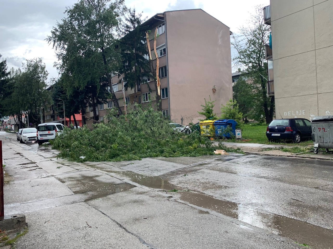 Olujno nevrijeme pogodilo je jutros područje Bihaća. Udari vjetra između 50 i 70 kilometara na sat čupali su drveće.