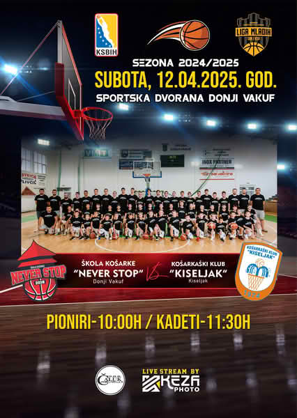 Pioniri i kadeti ŠK Never stop Donji Vakuf, u subotu,12. aprila 2025. godine u Sportskoj dvorani Donji Vakuf od 10.00, odnosno 11.30 minuta igraju utakmice 21 kola Lige mladih SBK.