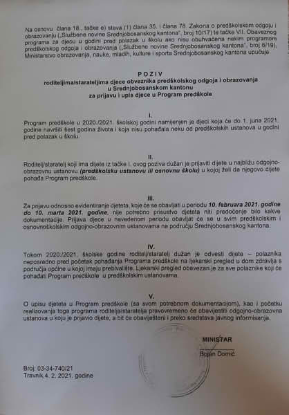 Poziv roditeljima/starateljima za prijavu i upis djece u Program predškole