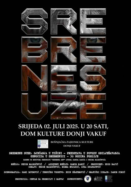 Centar za promociju i razvoj Tuzla, JU Bosanski kulturni centar TK i udruženje „preživjeli genocida 11. juli 1995“ zajednički su producirali predstavu “SREBRENE SUZE: Sjećanja u tišini 30 godina poslije“, kojom će obilježiti godišnjicu genocida u Srebrenici.