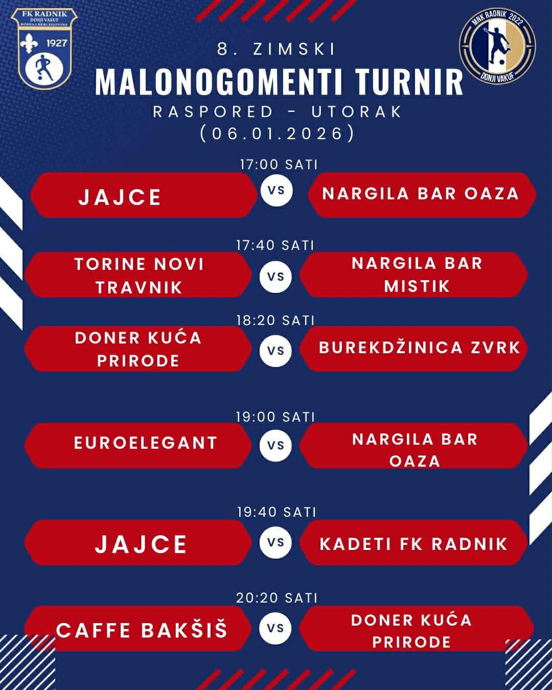Nakon svečanog otvaranja 8. Zimskog malonogometnog turnira, koji se i ove godine održava u organizaciji FK Radnik i MNK Radnik 2022, pod generalnim pokroviteljstvom Općine Donji Vakuf i Javne ustanove Centar za kulturu, informisanje i sport Donji Vakuf, publika je imala priliku uživati u uzbudljivim i sadržajnim utakmicama.