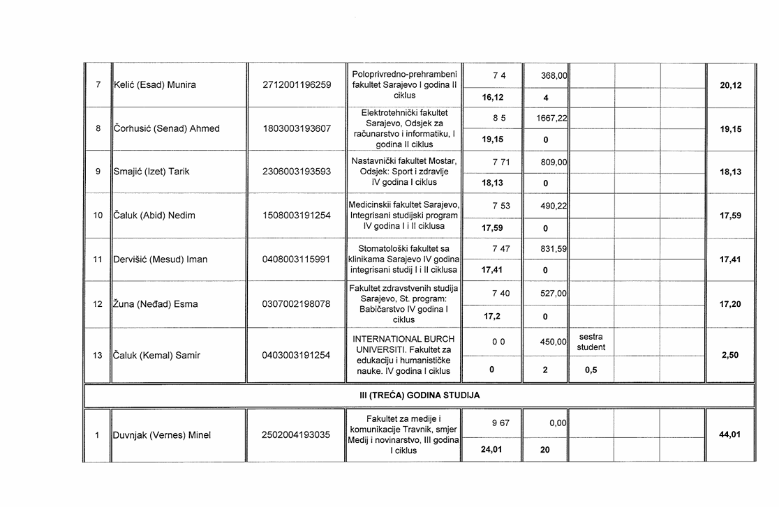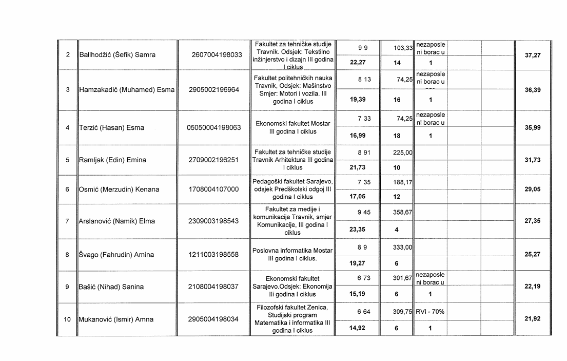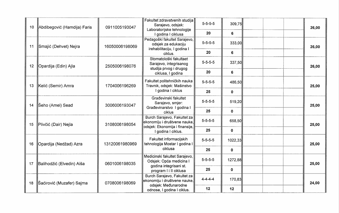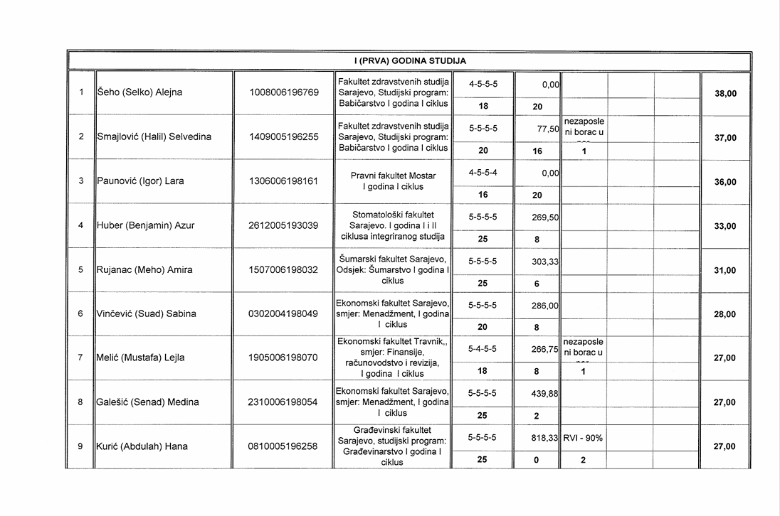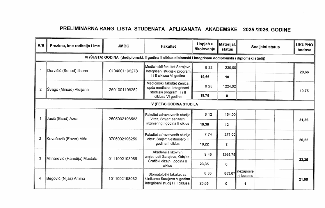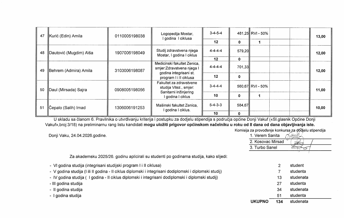 Na stranici Općine Donji Vakuf objavljena je preliminarna rang lista studenata aplikanta akademske 2025/2026. godine.