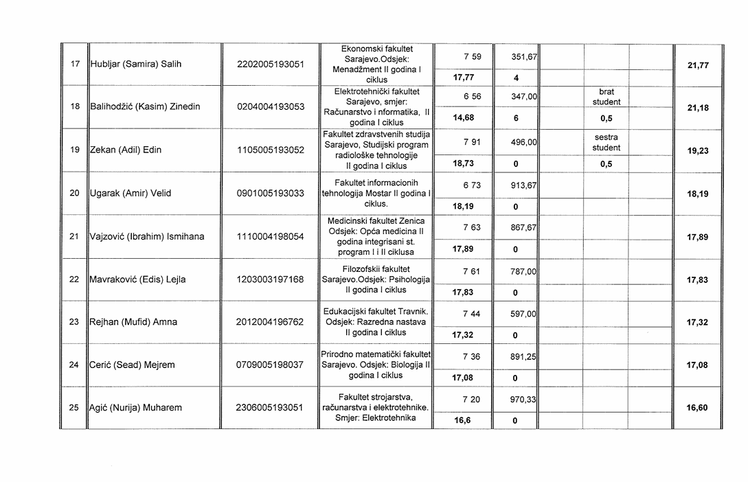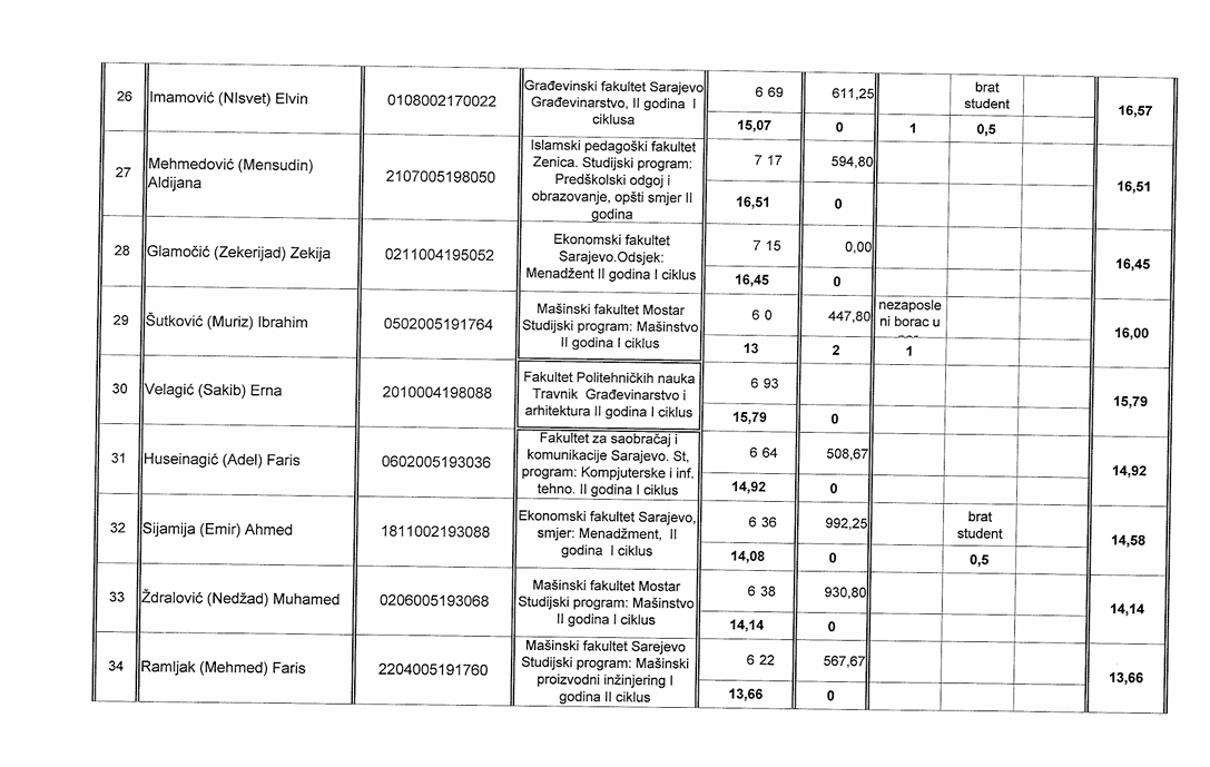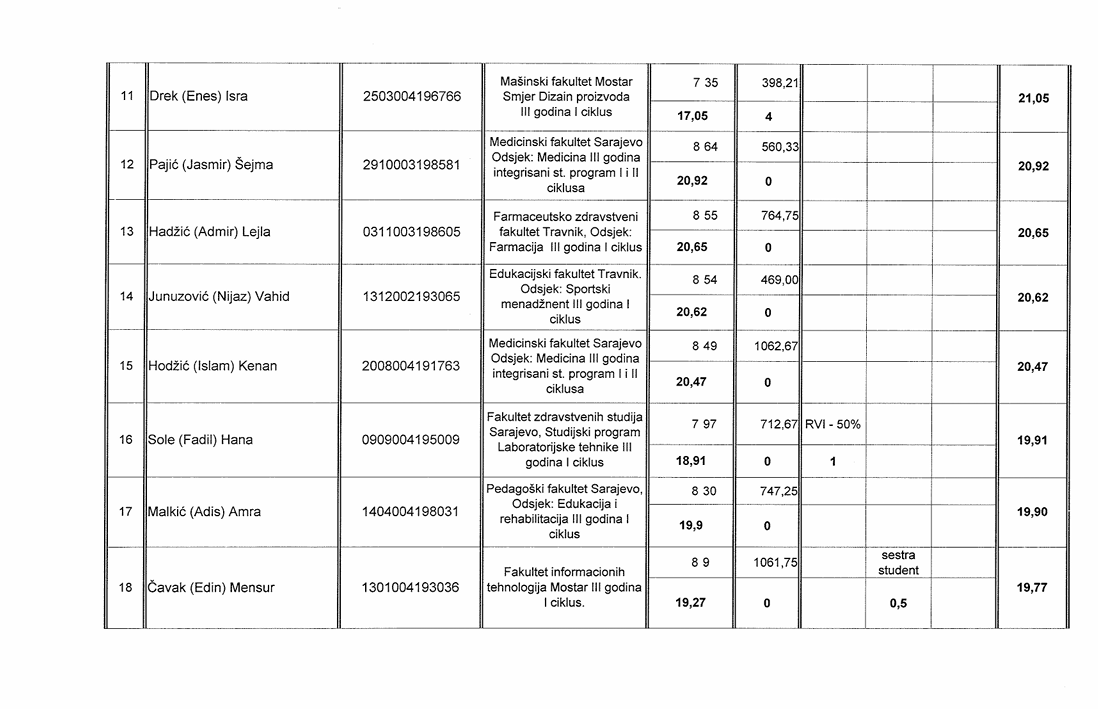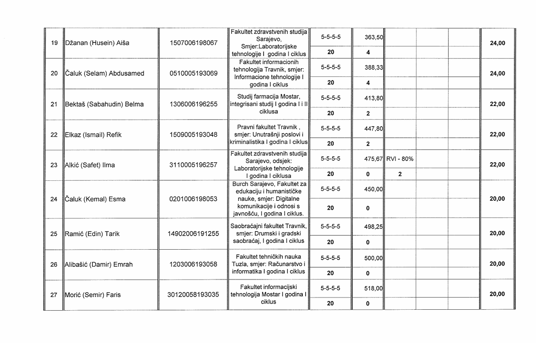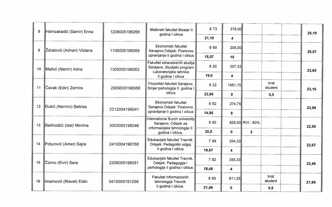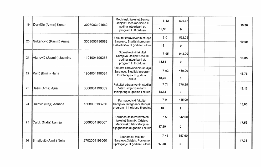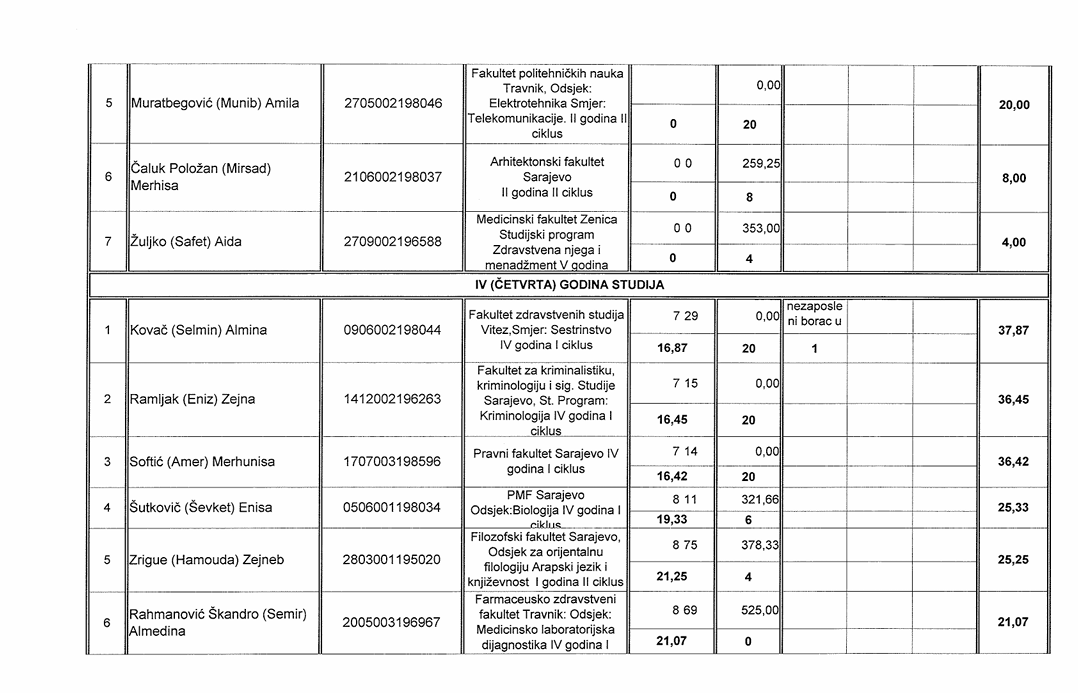 Na stranici Općine Donji Vakuf objavljena je preliminarna rang lista studenata aplikanta akademske 2025/2026. godine.