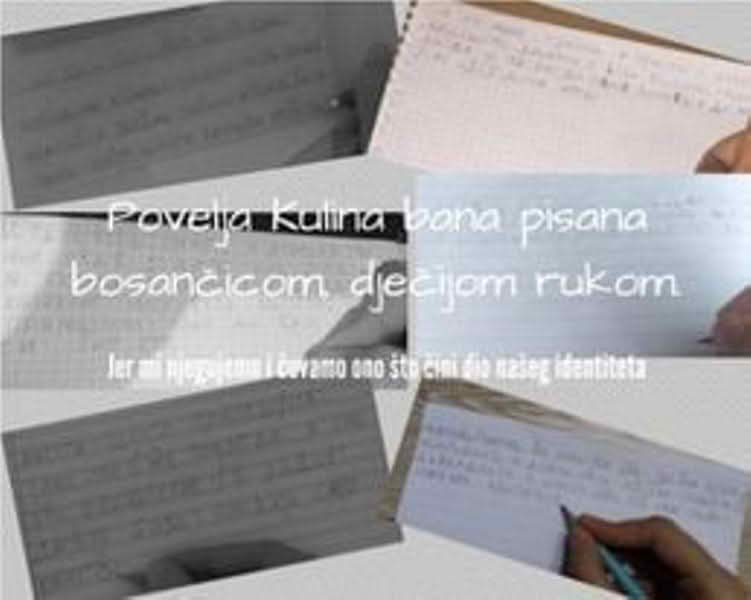 Ahmedisa Kosovoc, Džejla Dervišić, Sara Omerinović, Ajdin Fejzić, Adel Ganibegović uz pomoć nastavnice Azre Habib svojom rukom pisali bosančicom Povelju Kulina bana.