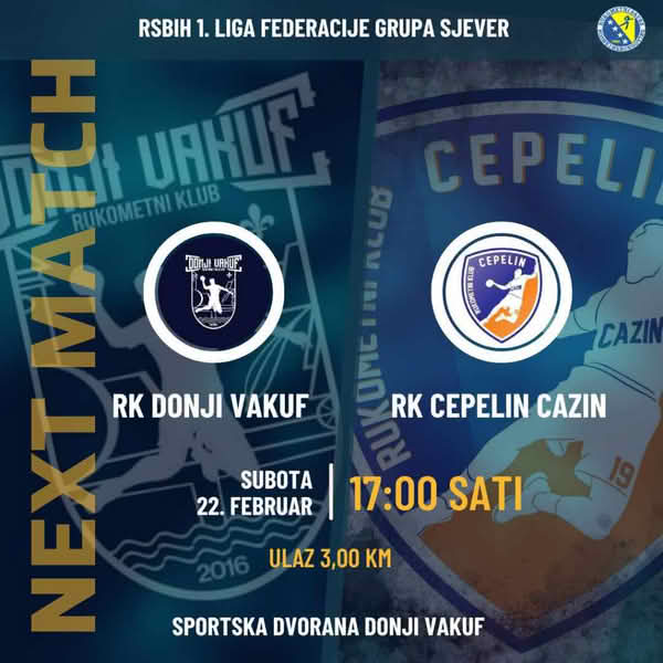 ” Novi izazov za naš klub, dolazi nam odlična ekipa Cepelina iz Cazina u goste.Ponovo nam je potrebna podrška publike” – istakli su iz Rukometnog kluba Donji Vakuf.
