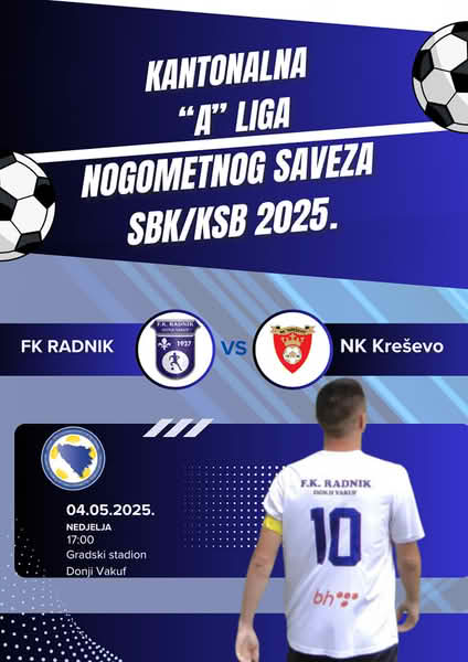 U okviru Kantonalne lige SBK , grupa A, FK Radnik nakon prošlosedmične pobjede u Bugojnu, i dalje suvereno stoji prvi na tabeli. Redovno kolo igraju danas na domaćem terenu protiv ekip NK Kreševo.