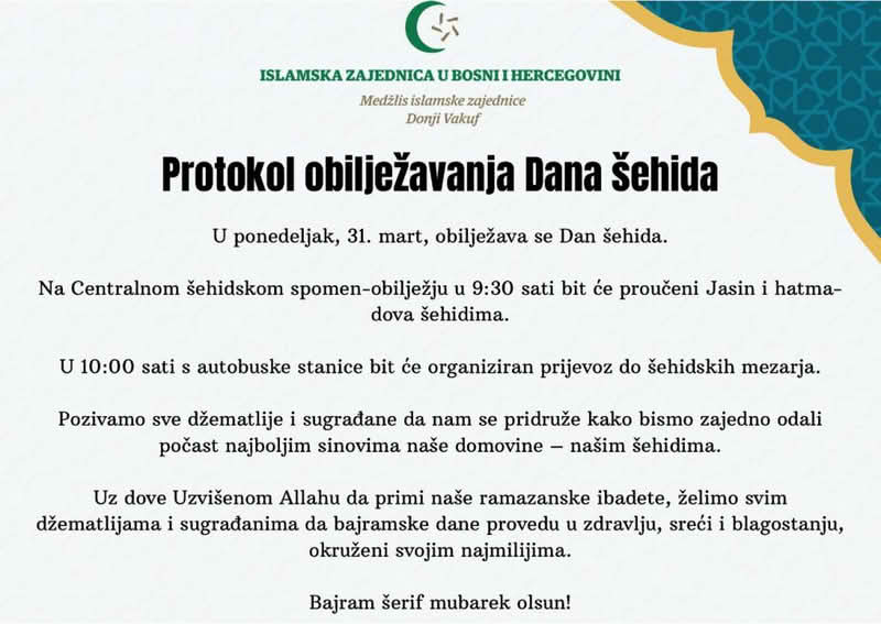 Sutra je Dan šehida: Protokol Medžlisa IZ Donji Vakuf
