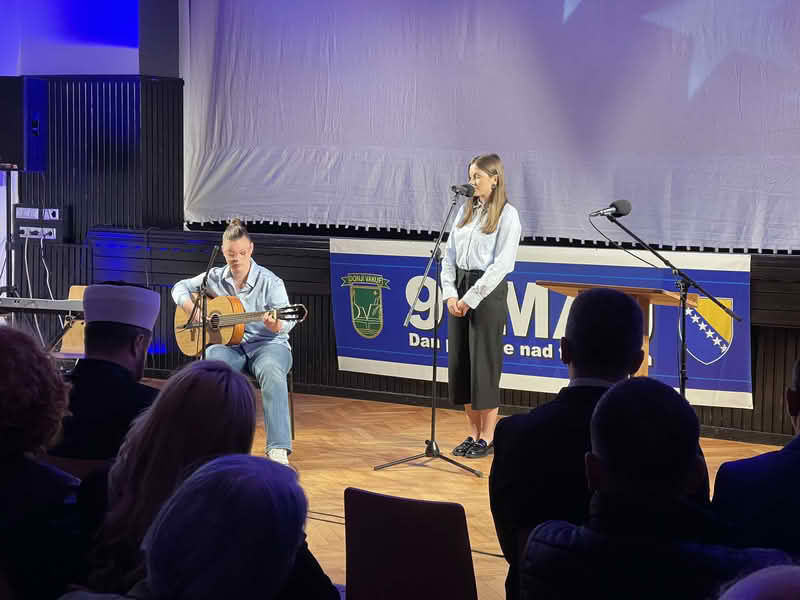 Članice i članovi Gradske biblioteke Donji Vakuf, Amir Horoz i Faris Huber kroz emotivne recitacije o miru, zahvalnosti i nadi, uz muzičku pratnju učenice Azre Opardije, Muzičke škole Bugojno – Odjeljenje Donji Vakuf, unijeli su toplinu i duboku poruku u program svečane akademije, dok je svečanost zavšila uz pjesmu „Samo da rata ne bude“, u izvođenju učenice Almase Verem.
