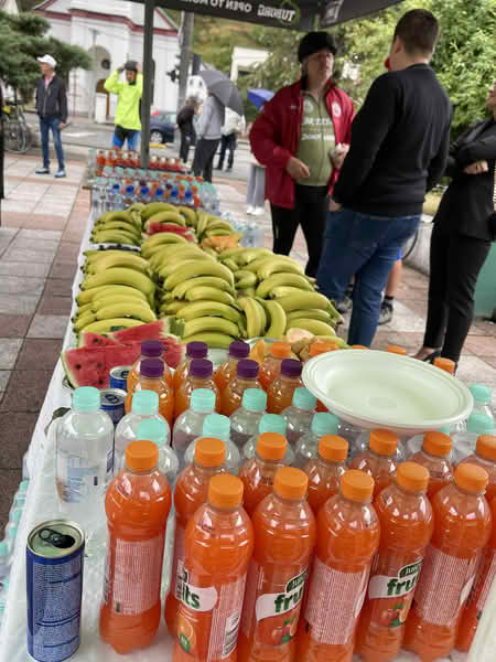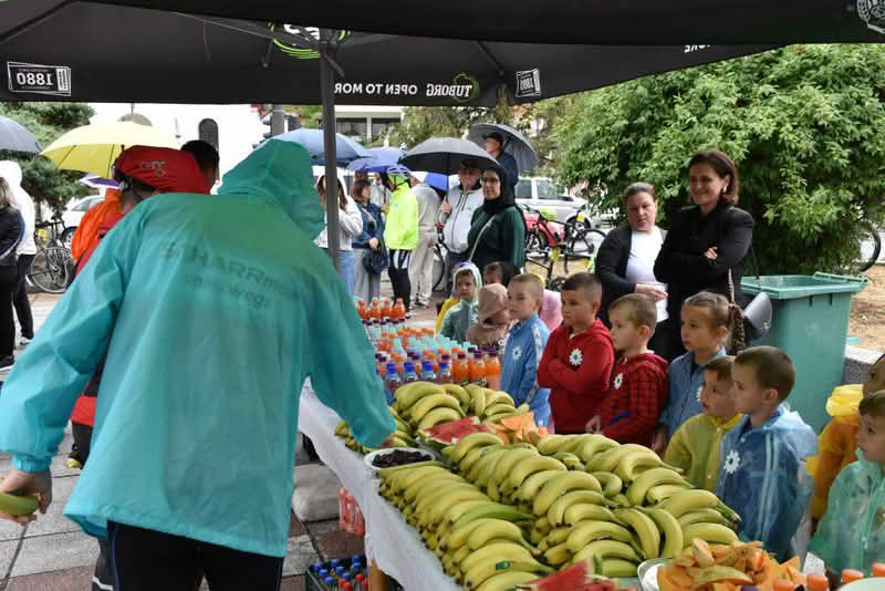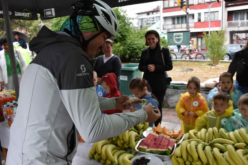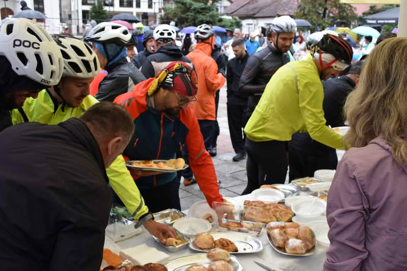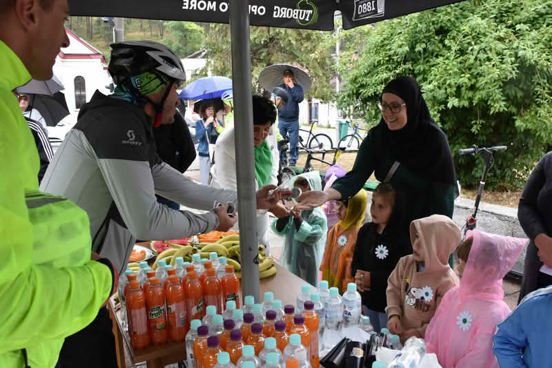 Loše vrijeme i kiša nisu spriječili naše sugrađane da dočekaju umorne bicikliste, ponude im osvježenje u vidu vode, soka i raznog voća, a naravno tu su bili i tradicionalni kolači. Poseban detalj pripremili su i članovi Udruženja za uzgoj i zaštitu sitnih životinja Donji Vakuf koji su u znak 30. godišnjice genocida u Srebrenici, sa Trga Ibrahim – bega Malkoča pustili trideset golubova koji simbolizuju mir i sjećanje na sve žrtve.
