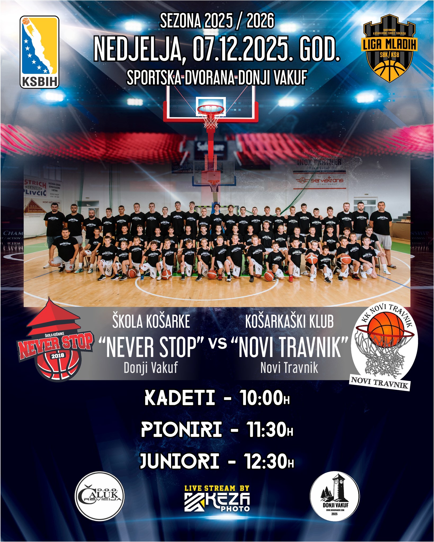 Omladinski pogon ŠK “Never Stop” u nedjelju, 07. decembra igra utakmice Lige mladih SBK. U goste im dolaze pioniri, kadeti i juniori KK “Novi Travnik”. Prvi će na parket Sportske dvorane Donji Vakuf izići kadeti od 10 sati.