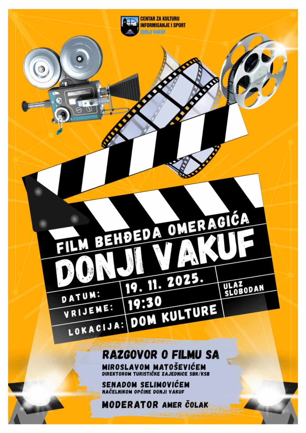 JU Centar za kulturu, informisanje i sport Donji Vakuf poziva Vas  večeras na projekciju dokumentarnog filma Behđeda Omeragića  od 19:30 sati.